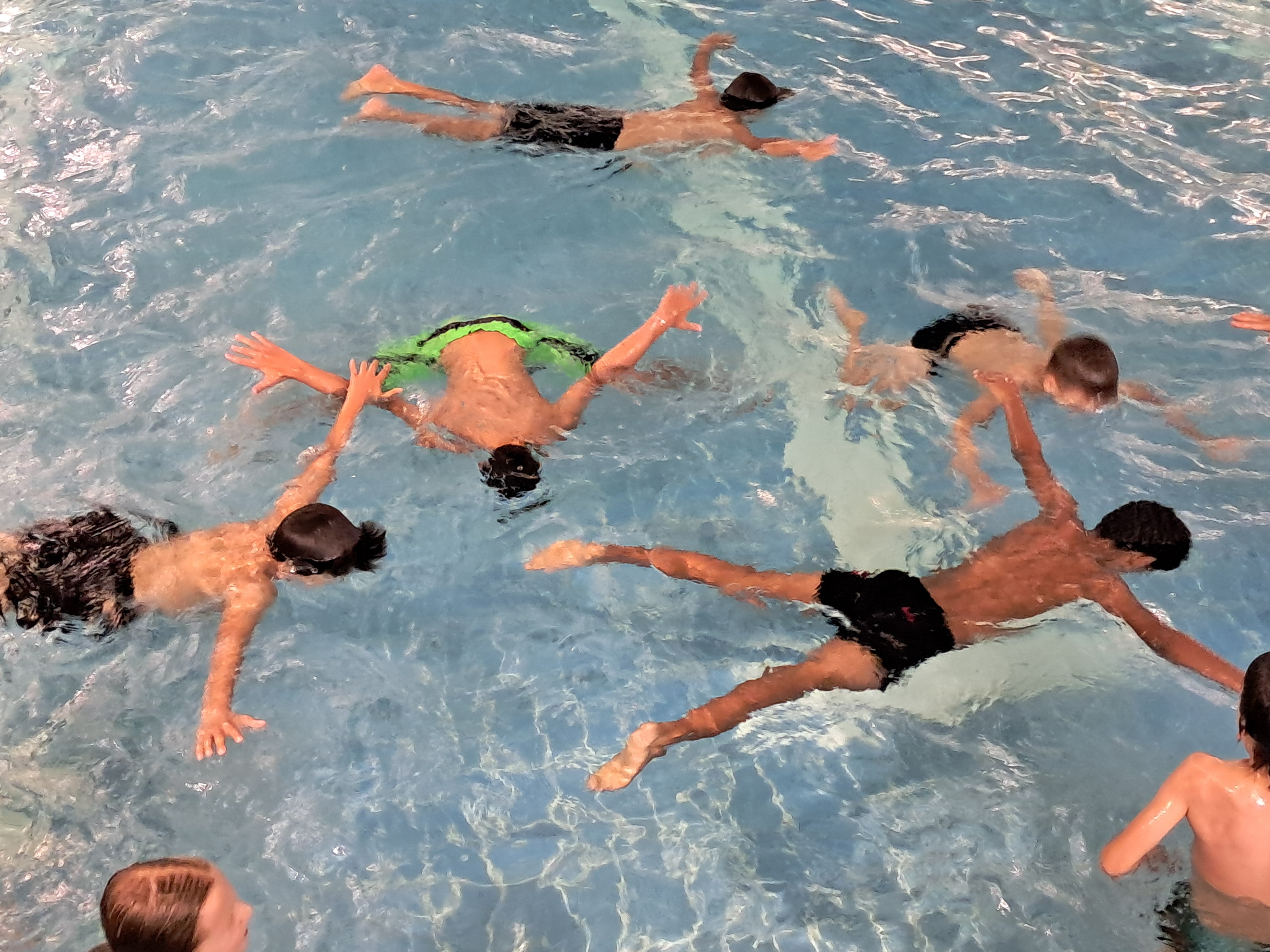 Schon nach der ersten Stunde wissen sie, dass die Ente-Frosch-Übung sinnvoll und notwendig ist, denn sie spüren unmittelbar: Beim Schwimmen sind auch die Beine wichtig.